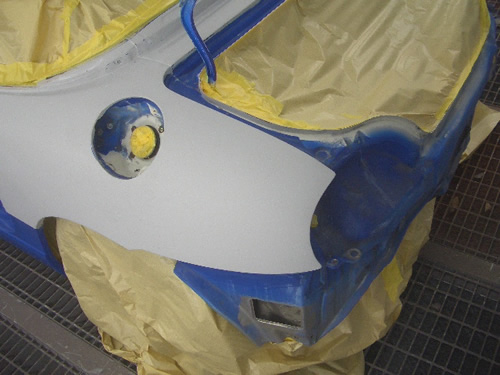 純正のブルーメタリックから、スバルのWRブルーマイカに全塗装します。
