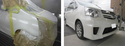 トヨタ ヴェルファイアのフロントバンパーの交換を行いました。